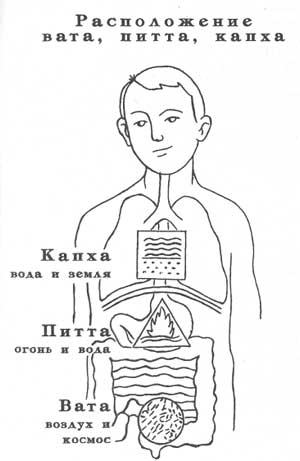 Противоположным “принципу Слизи” («липкой жидкости») в теле является “Принцип Ветра” («движения»). “Ветер” («Движение» — Вата-Доша) образуется в толстом кишечнике и расходится по всему организму, обеспечивая ему подвижность, давая потенциал активности ( ‘Прана‘), перемещает «питательные» вещества к клеткам и выводит из них остатки метаболизма.