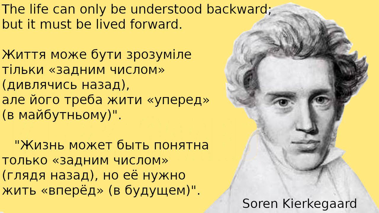 Жизнь можно понять только «задним числом» (посмотрев назад), но её нужно жить «вперёд» (в будущем).