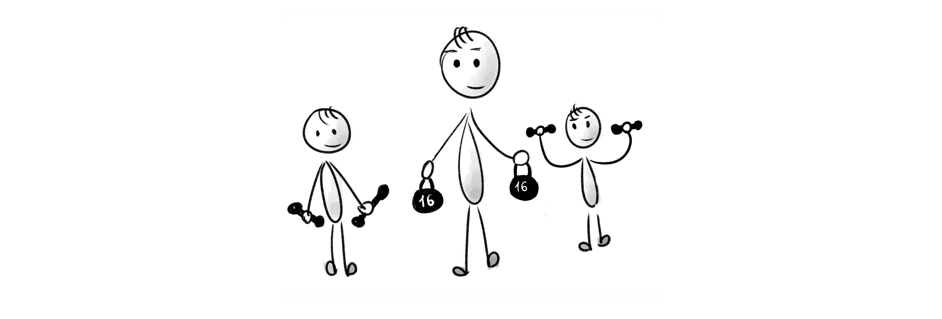 * малыш пробует этот мир — мужчина поддерживает и культивирует его интерес;