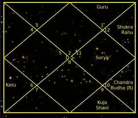 Карта мужчины. Человек восприимчивый {R2﹫La}, но получает большинство ощущений в жизни от внешних объектов, социальный мир, окружение имеют гораздо более сильное влияние на него, чем его внутренний мир, собственные ощущения. {5Grahas﹫Bh9-Bh12}