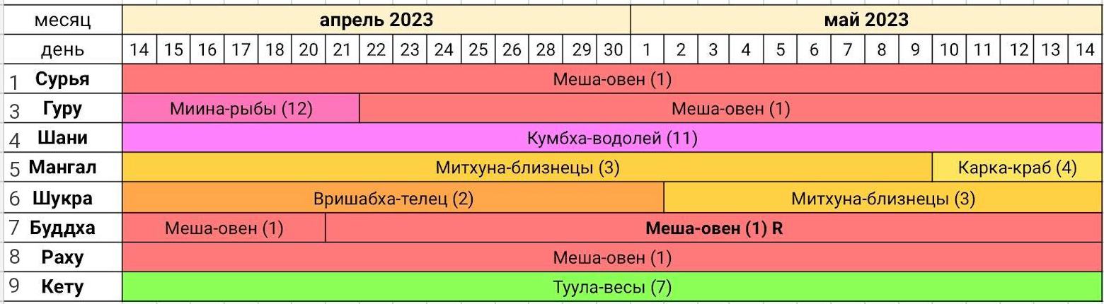 Кроме того, заметным и влияющим на нас в этот период будет также переход («транзит») Грахи Гуру (Брихаспати — Юпитера) из Раши Миина → в Меша-Раши (из Рыб → в Овна).