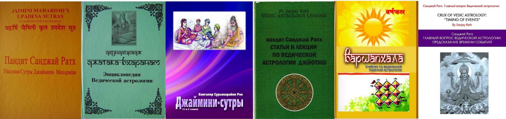 | Трактат “Упадэша-Сутры Махариши Джаймини”‘Махарши-Джаимини-Упадэша-Сутрам’ (“Упадеша-сутры Махариши Джаймини”) Дополнительные, разъясняющие сутры (афоризмы) мудреца Джаимини. Даёт объяснение знаний и техник традиционной Брихат-Парашара-Хора-Шастры. Автор: Махариши Джаймини (3 тысячелетие до н. э.) Перевод с Санскрита и комментарии: Санджай Ратх. 4 части (адхьяи) по 4 пады (всего 16 пад). ISBN 978-966-508-368-6 |