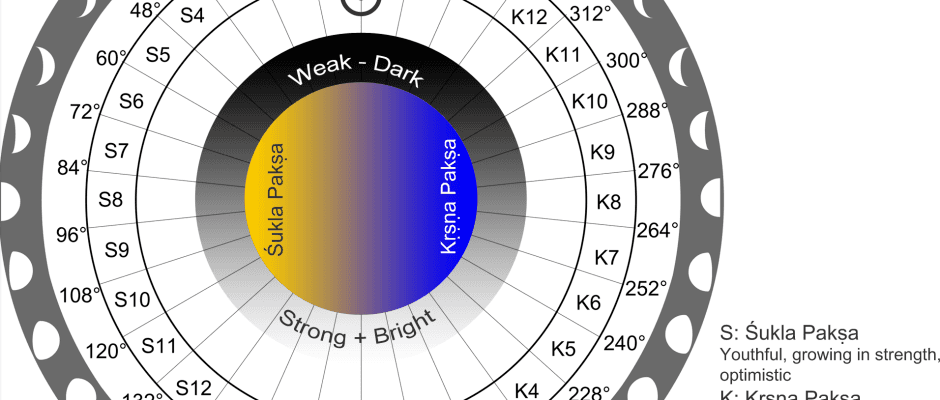 Значит шёл уже 3-й титхи — Тритья, и более того разница между Сурьей и Чандрой уже не равна 24°00′, а равна 24°31′, таким образом на 31′ изменилась угловая разница между координатами Сурьи и Чандры.